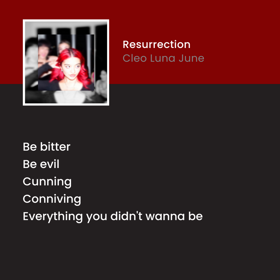 ‘Resurrection’ was born out of a time of destruction and complete exile. One of the most powerful things you can do is to alchemize your poison and turn it into your medicine to heal. This is a power anthem of reclamation, resurrection, and liberation. It’s good to shed your old skin and be a little bad sometimes 🤪